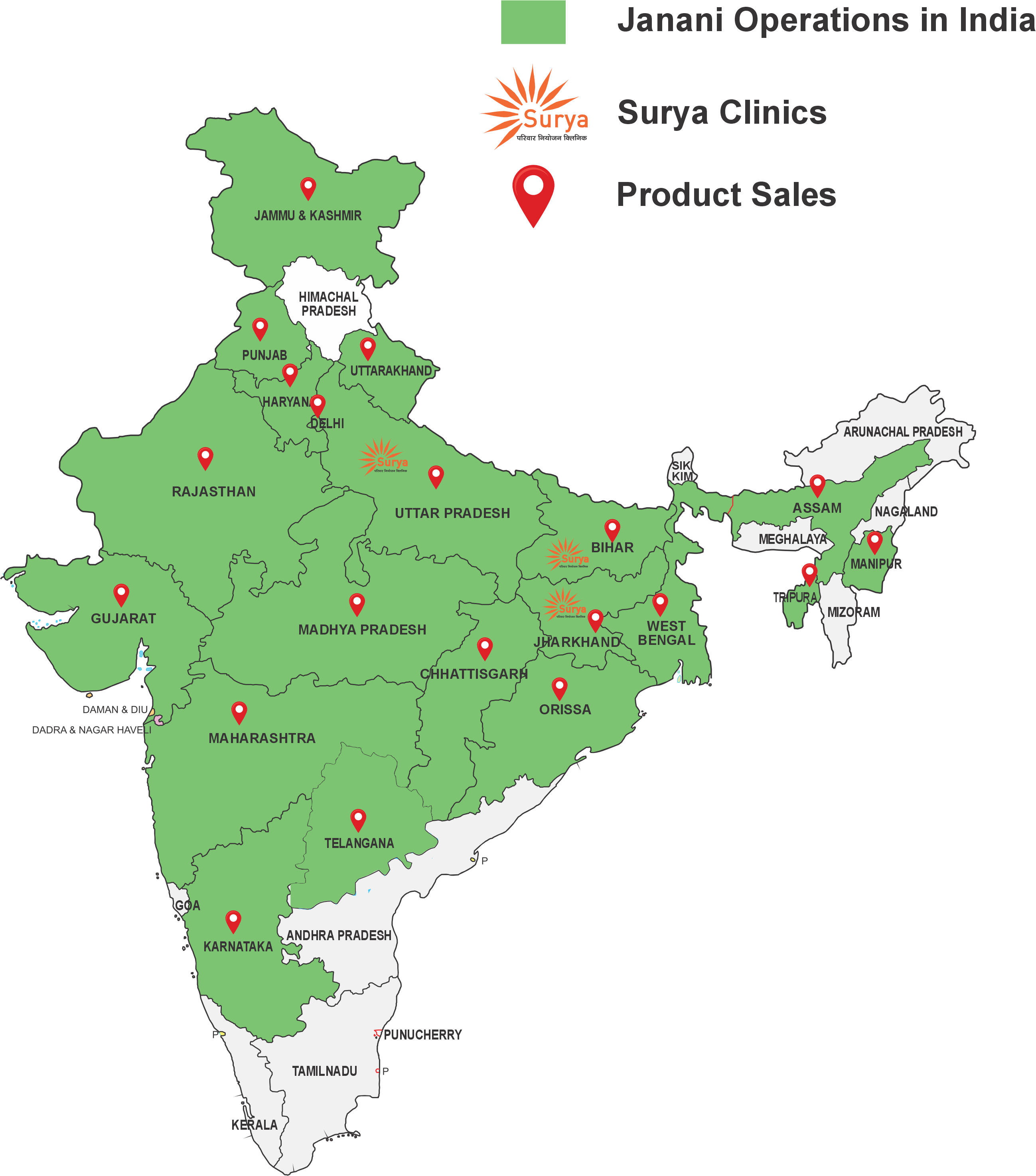 Our brand of clinics, Surya Family Planning Clinics, are present in Bihar, Jharkhand and Uttar Pradesh.